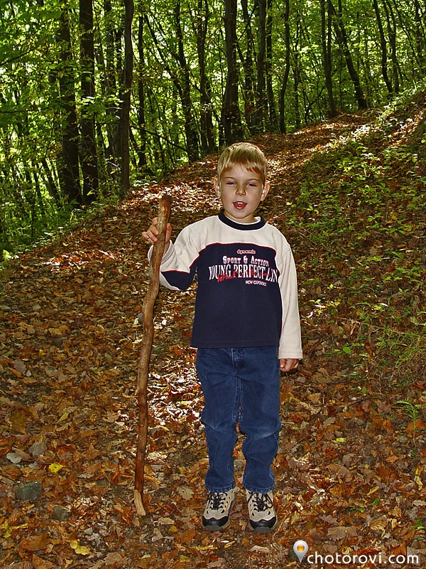Не след дълго сина ми като истински турист (или момченце ;-)) се въоръжава със здрава пръчка. Нещо много необходимо в планината 😛 .