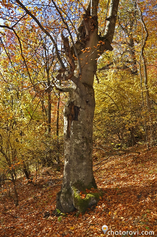 Изкачвайки се към пещерата попадаме на старо дърво, което, ако можеше да говори, щеше да разкаже много любопитни и интересни истории за превратностите на съдбата. Личи си, че е устоявало на много бури и несгоди, а дънерът му е прокопан от огромна хралупа.