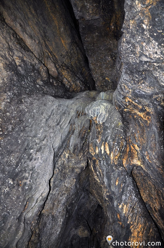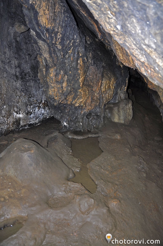 На пръв поглед пещерата свършва до тук, но ако се вгледате по добре в дясно започва галерия, която отвежда към вътрешността. Поемаме по нея и внимавайки да не се подхлъзнем напредваме навътре. По предварителна информация, пещерата завършва с красиво подземно езеро.