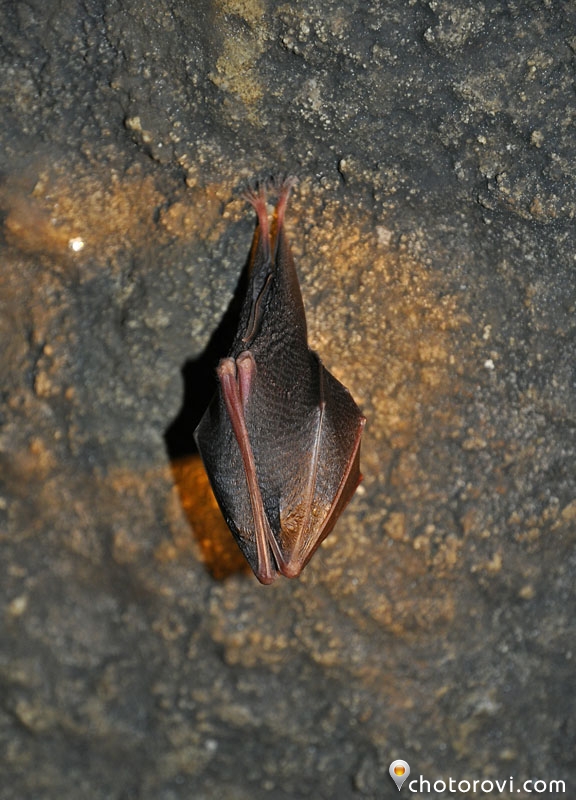 След около 150-тина метра, казвам на малкия спелеолог, че е време да се връщаме, тъй като не сме екипирани подходящо за навлизане в непозната, необезопасена и неосветена пещера. Не е добра идея, а още по лоша практика да се създава излишна самоувереност и чувство „това на мен не може да се случи“ в децата, особено, ако се занимават с екстремни спортове (какъвто е и нашия случай). Изтъквам доводите, че не носим нито резервно осветление, нито алпийски инвентар за в случай на нужда. Следва редовното мрънкане и желание да продължим напред. За да подкрепя думите си, предлагам да загасим прожекторите и челниците (като по този начин симулираме съвсем реалната ситуация, на свършили батерии, изгорели крушки или счупени от падане или удар фенери) и да се опитаме да се върнем до изхода в тъмнината. Естествено обучението го провеждаме в контролирана и напълно безопасна среда, без наличието на скални козирки или пропасти. Речено – сторено. Гасим осветлението и от всякъде ни обгръща лепкав и хладен мрак. Тишината е гробовна и единственото, което се долавя е собственото ни дишане и шляпането на обувките в лепкавата кал на пода. Изчакваме няколко минути „да ни свикнат очите с тъмнината“, но при пълната ѝ липса, това е напълно безполезно. Обръщаме се кръгом и опипум тръгваме към изхода. При пълната липса на светлина куража и ентусиазма на Индиана Джоунс – джуниър, 😉 започва да се изпарява. 🙂 Започва се едно лизгане и плизгане съпроводено с блъскане и удряне в стените на галерията. Симулация започва да не му допада, а сме само на стотина метра от входа. Изведнъж положението се влошава още повече. Във въздуха се усеща и чуждо присъствие. Нещо безшумно и хладно. Някаква невидима сянка преминава покрай и около нас. Усещаме я с кожата си, която мигом настръхва. Веднага в съзнанието изникват всички спомени за филми на ужасите, всевъзможните извънземни, митични и прочие същества на мрака от митове и легенди. Съзнанието ни, не свикнало на такъв дефицит на зрителна информация, веднага се опитва да я замести, като очите започват „да виждат“ разни неща. Спираме на място, изчакваме няколко секунди и по желание на синът ми прекратяваме експеримента. Запалвам прожектора, прокарвам го плавно по стените и тавана и… откривам виновника за нашите притеснения да виси ни лук ял, ни лук мирисал от една скала. Прилеп!