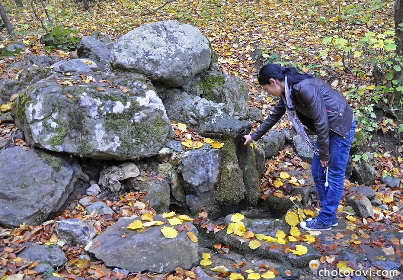 Постояваме известно време в очакване водата да потече (където е текло, пак ще тече), но освен няколко капки процеждащи се през устата на змейо-крокодила, нищо друго не се случва. След петнадесетина минути, с леко разочарование, решаваме да продължим към крайната ни цел – пещерата „Жива вода“ и на връщане да си опитаме отново късмета. Пътеката за пещерата започва в дясно от заслона (има надраскана на ръка указателна табела). Времето е превалило пладне и слънцето огрява върховете на дърветата и килима от листа по земята, като създава усещането за някаква приказка или картини от рая.