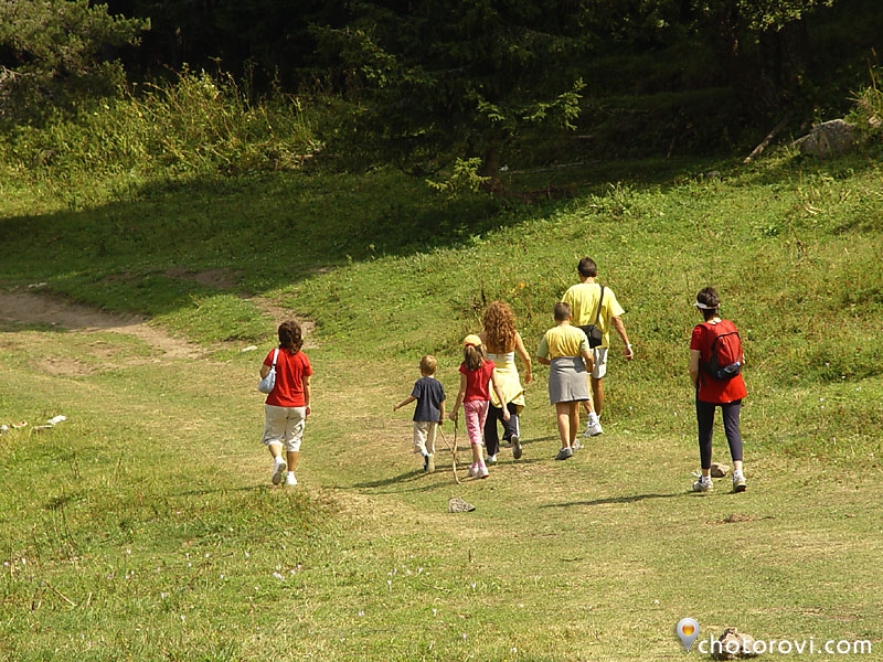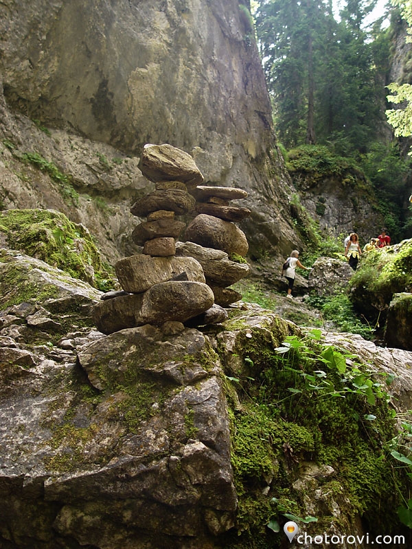 Поверието казва, че когато човек се качва във високата планина трябва да вземе едно камъче (камък) от равнината и да го качи в планината, където да го остави върху някоя такава пирамида край пътеката. Така по естествен начин се изгражда и поддържа маркировката във високите планински участъци. Следват снимки за спомен (нали сме много шарена група 🙂 )