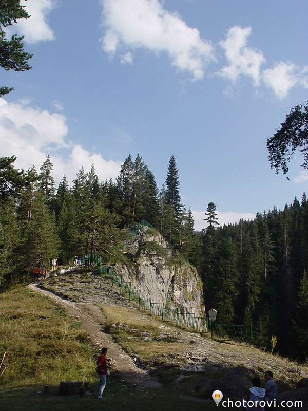 След кратко лутане попадаме на „уникалния феномен“. Действително е уникален, но за декор на водевил. Странна доста нескопосано направена и обезпокоително неподсигурена дървена конструкция. Нарушавайки всички норми за безопасност и закрила на детето на Европейският Съюз ;-), качваме наследниците за по една снимка.