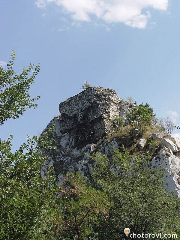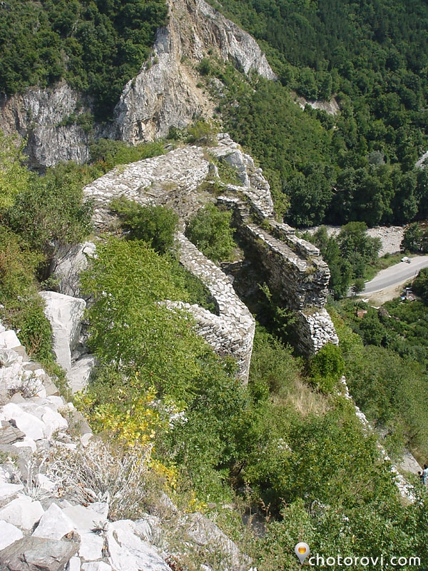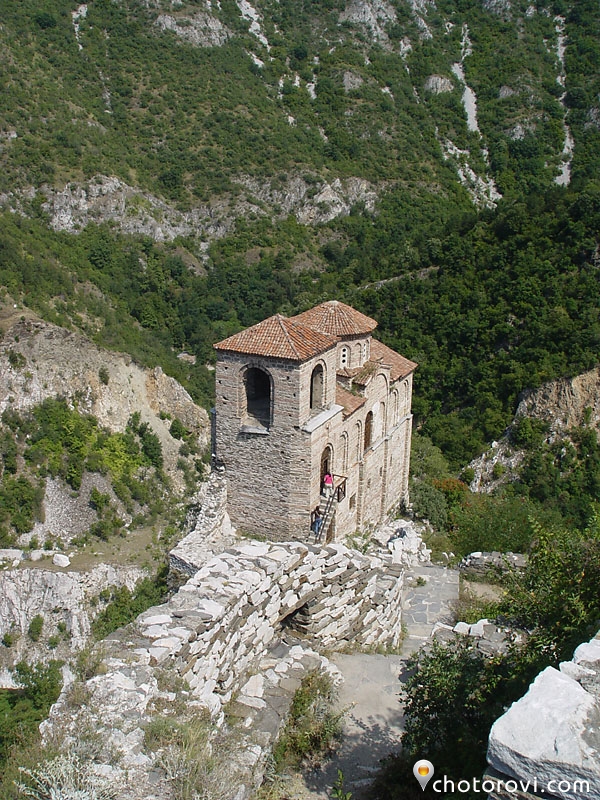 След преодоляването на една доста off-road напълно необезопасена пътека над стръмните скали се разкрива гледка към църквата в подножието на крепостта.