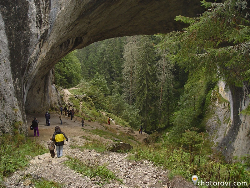 На другата сутрин, въпреки навъсеното време 🙁 поемаме пеш обратно към местността Чудните мостове. Достигаме до паркинга и по стръмна кална пътека се спускаме към природния феномен.