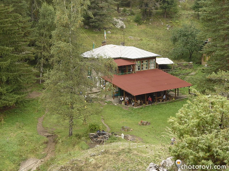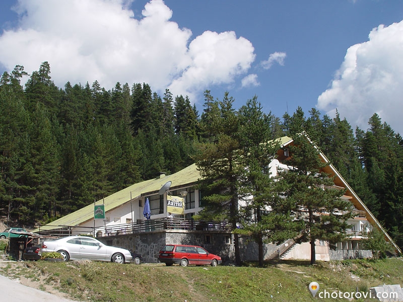 Навеса и тежките дървени маси подканят задъхания от изкачването турист, че е време за студена бира или топъл чай.